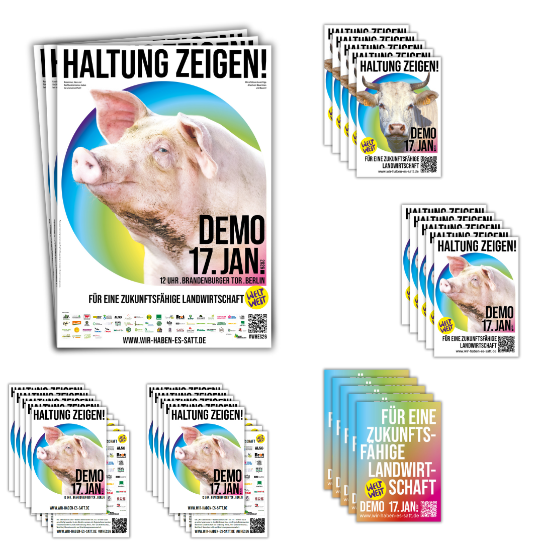 Tausende Postkarten, Plakate und Sticker warten darauf, überall verteilt zu werden. Hilf mit, die Demo in der ganzen Republik bekanntzumachen!