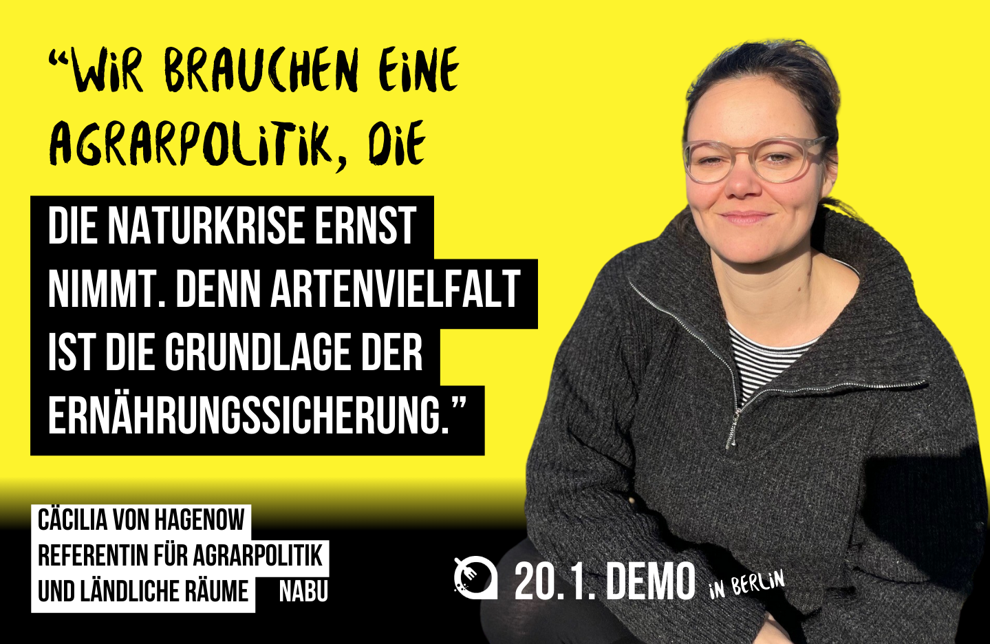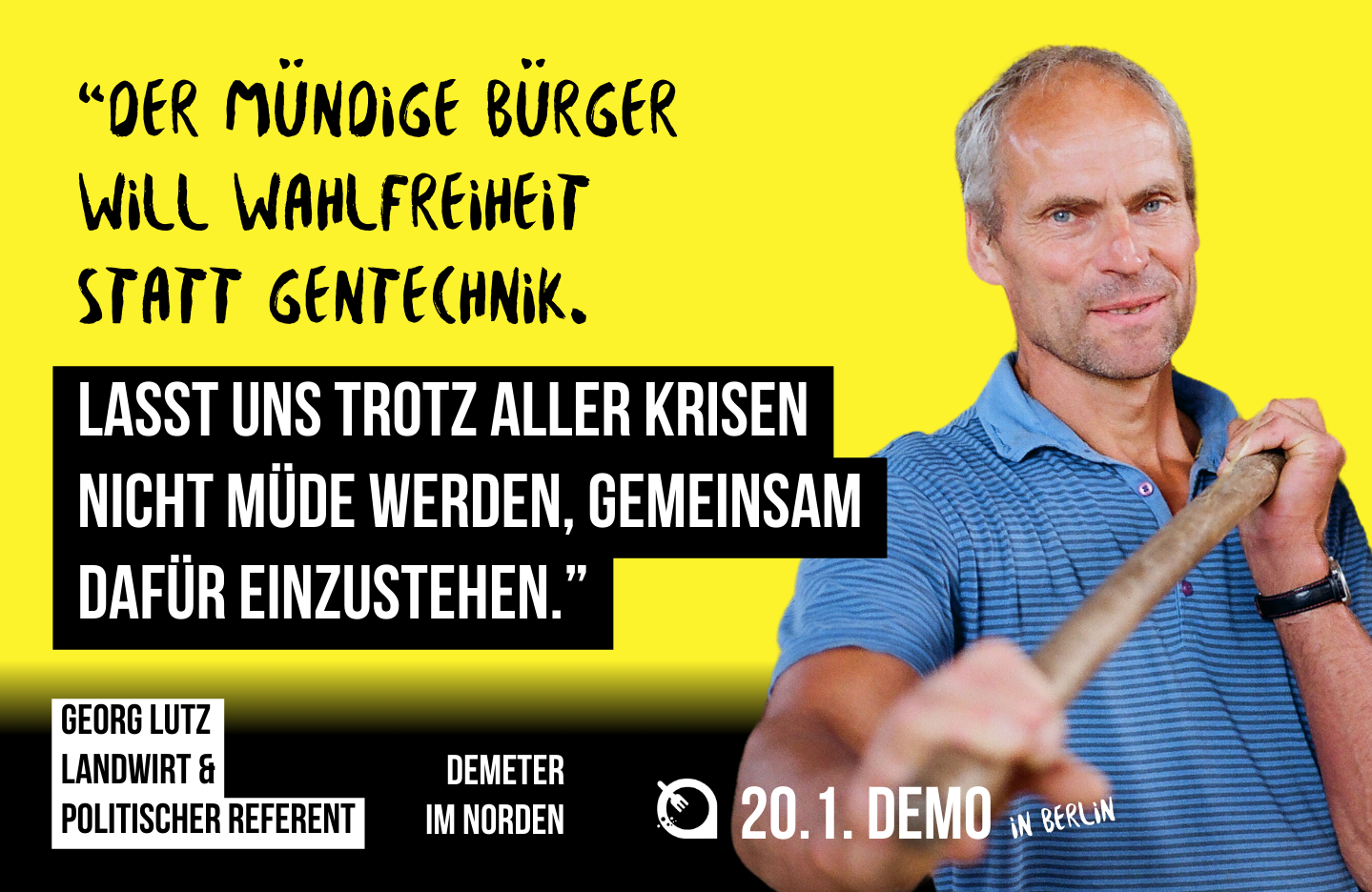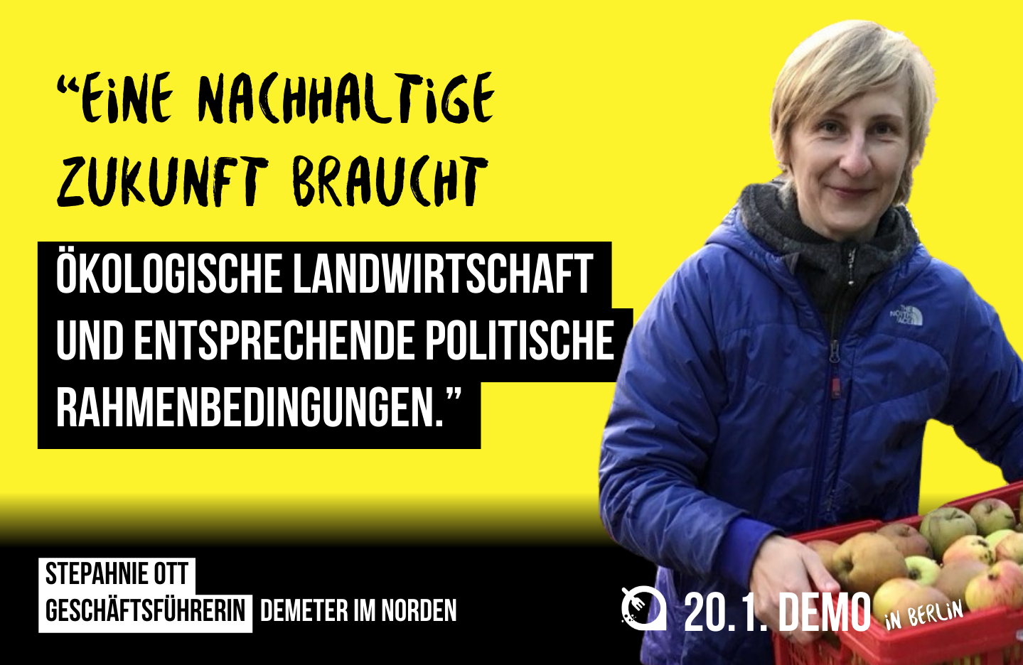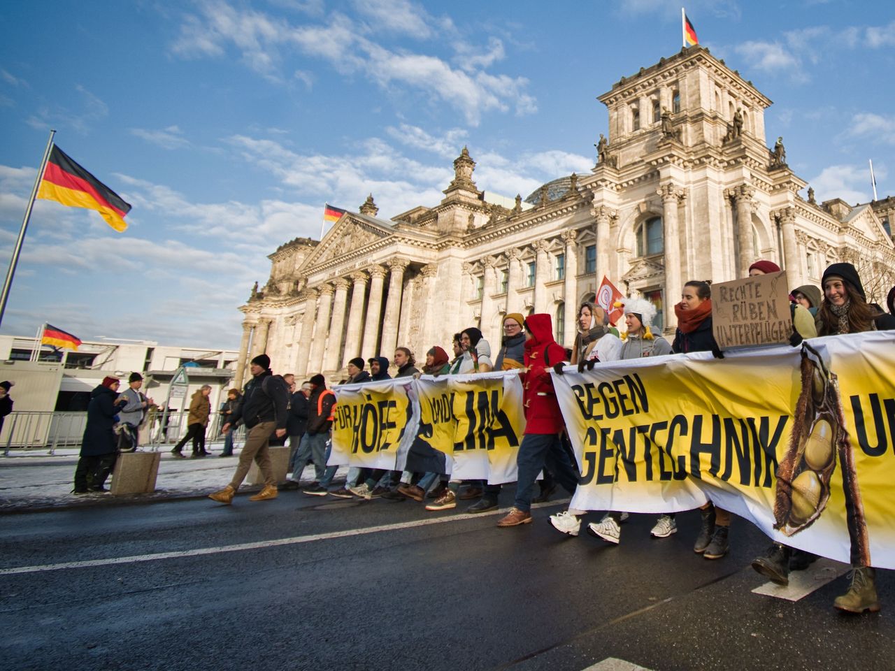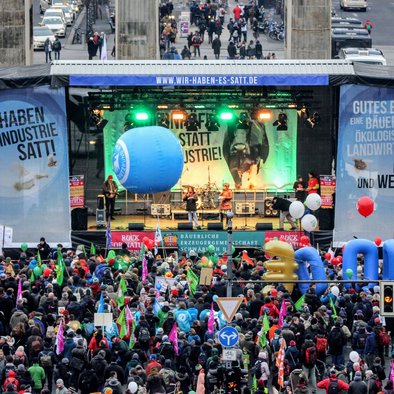 Immer im Januar gehen wir gemeinsam friedlich und demokratisch auf die Straße für eine bäuerliche, ökologischere und gentechnikfreie Landwirtschaft. Das breite Bündnis vereint Bäuerinnen und Bauern, von konventionell bis bio, von Tierhaltung bis Ackerbau, Gärtner*innen, Imker*innen und Lebensmittelhandwerker*innen, Aktive aus Entwicklungszusammenarbeit, Klimaschutzbewegung, Natur-, Umwelt- und Tierschutz.