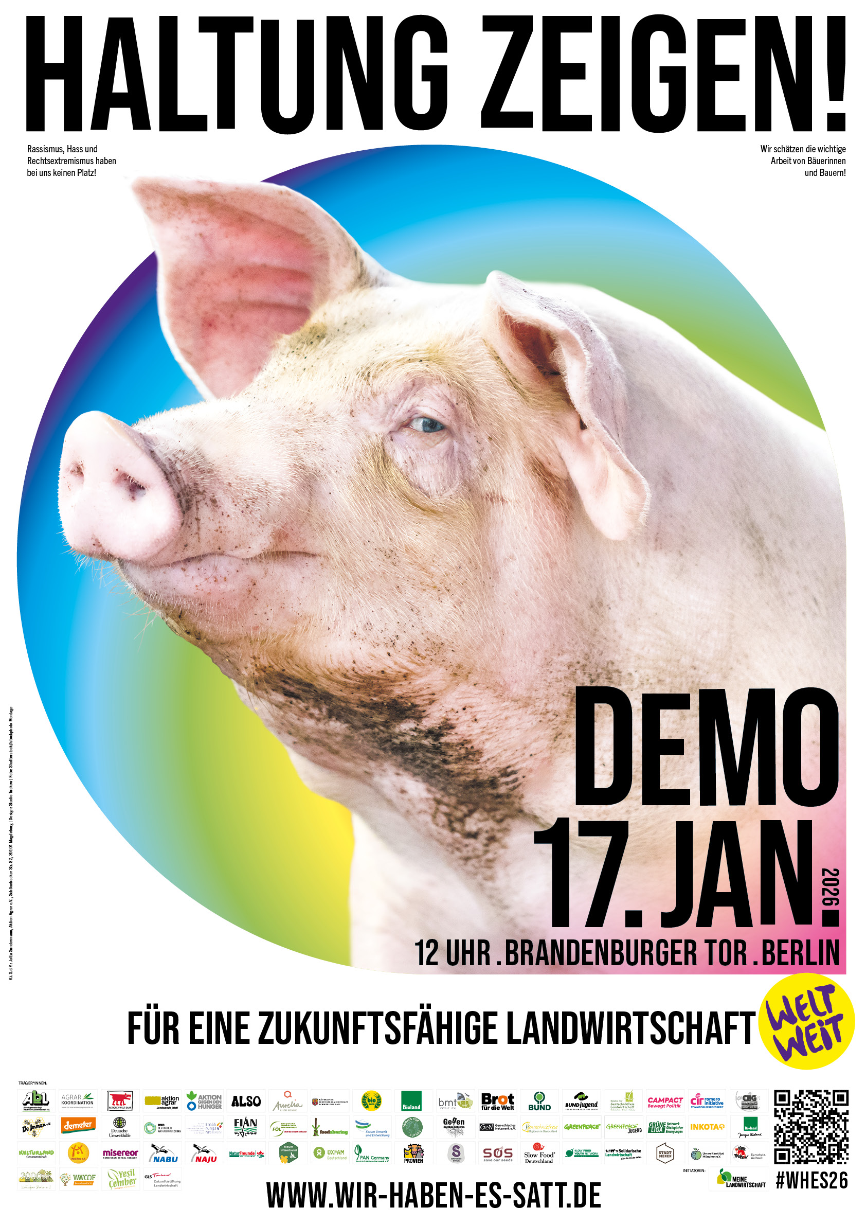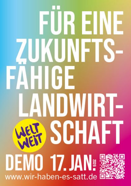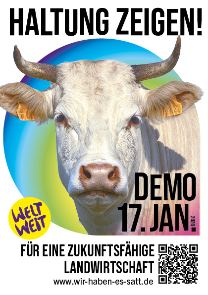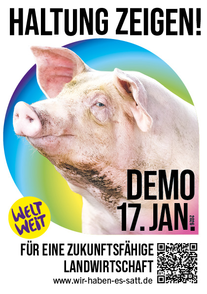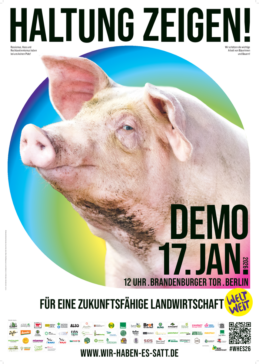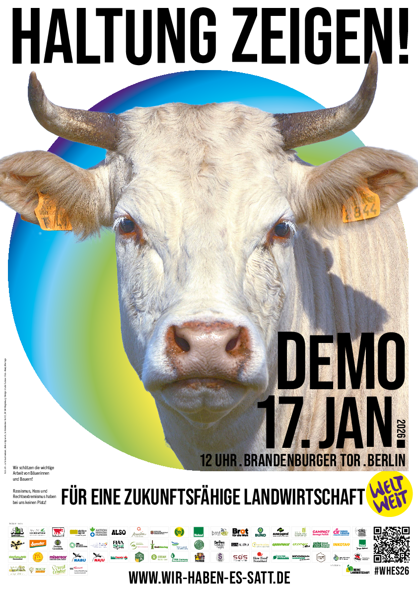 Es kann losgehen! Die Mobilisierung zur "Wir haben es satt!"-Demo 2026 startet - und jetzt kommt es auf euch an! Mit den Materialien auf dieser Seite könnt ihr die Demo bewerben. Vergesst dabei nicht, den Hashtag #WHES26 zu benutzen.